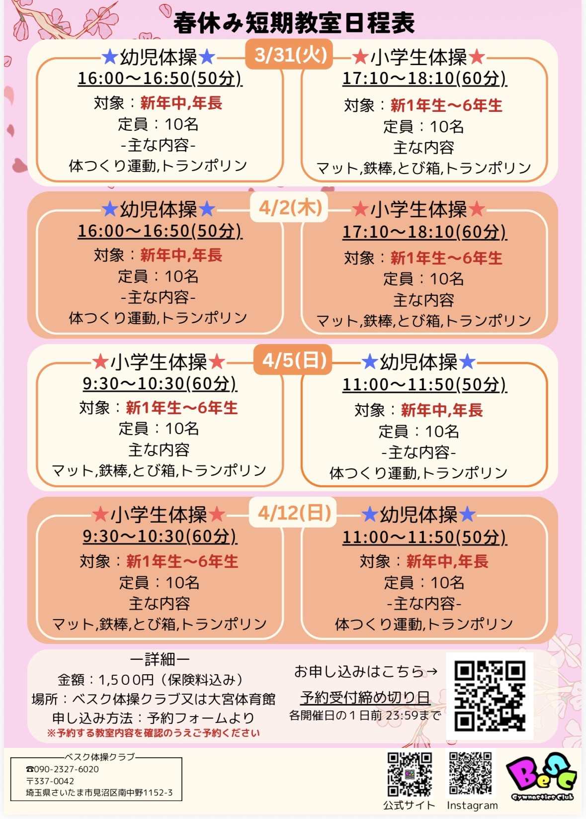 春休み短期教室開催のご案内